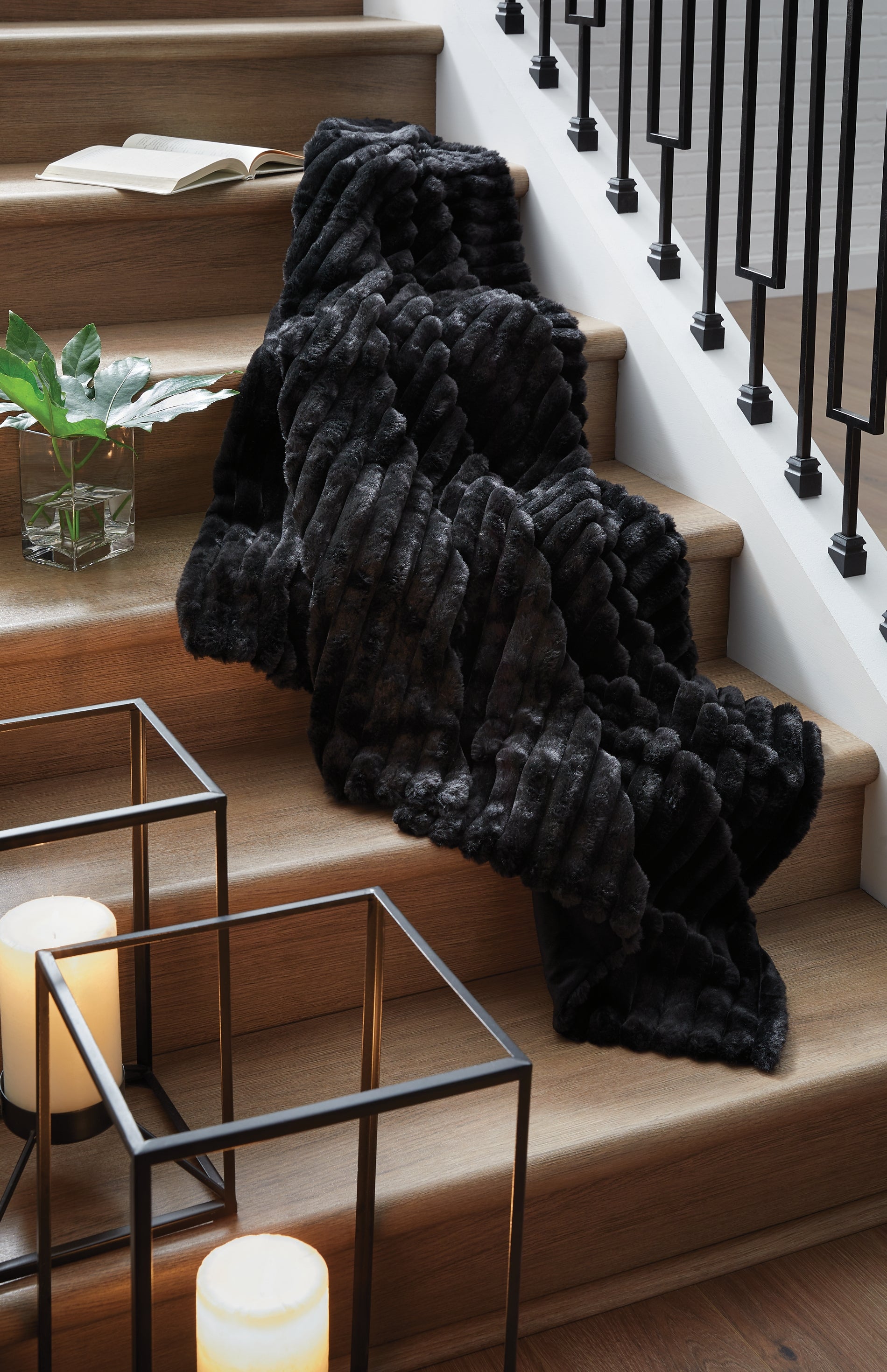 Details | Made with polyester, Jacquard faux fur stripe design, Machine washable (do not tumble dry) | |