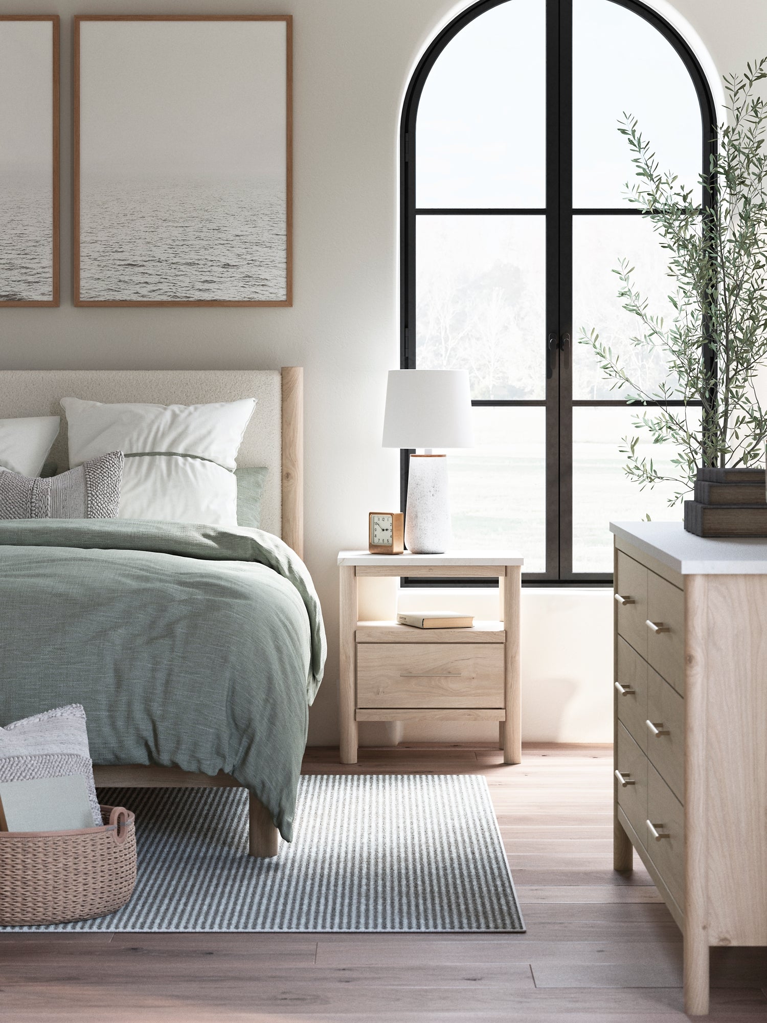 Transform your bedroom with this nightstand. With its clean lines and replicated marble top, it exudes a minimal and sophisticated boho style. Built-in lighting and charging capabilities add simplicity and ease to your everyday tasks. Tailor your space and create the perfect environment for sweet dreams.