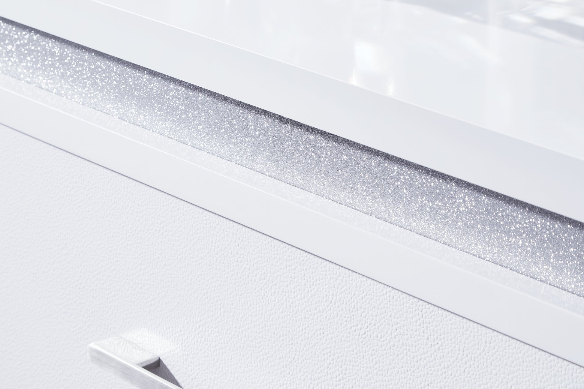 | Details | Includes dresser and mirror, Dresser made with hardwood solids and MDF substrates , Mirror made with solid wood, White paint finish, Dresser with inset acrylic glitter accents, Horizontal metal drawer pulls, 6 drawers with fully finished interiors, dovetail construction and heavy-duty ball-bearing side glides, Textured drawer fronts, Mirror with inset LED lighting; 3-way dimmer switch, Power cord included; UL Listed | |