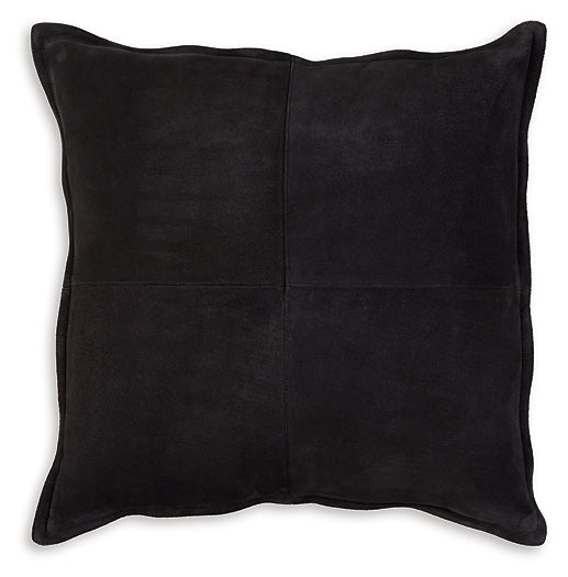 Add casually cool comfort to your couch with this pillow. Its sumptuous suede in a black patchwork pattern with flange is the essence of chic, cozy style.