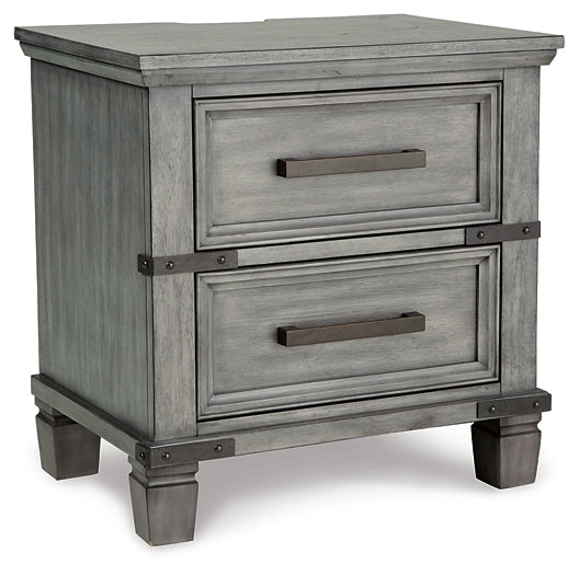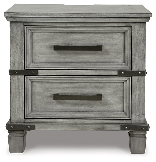 What's old is what's new with this nightstand. Serving up a fresh look in urban farmhouse style, this eclectic piece features a light weathered gray finish with dark aged bronze-tone bar pulls and metal straps for a casually cool sensibility. Profiled drawer frames, thick-profiled top moulding and tapered legs are the earmarks of timeless design.