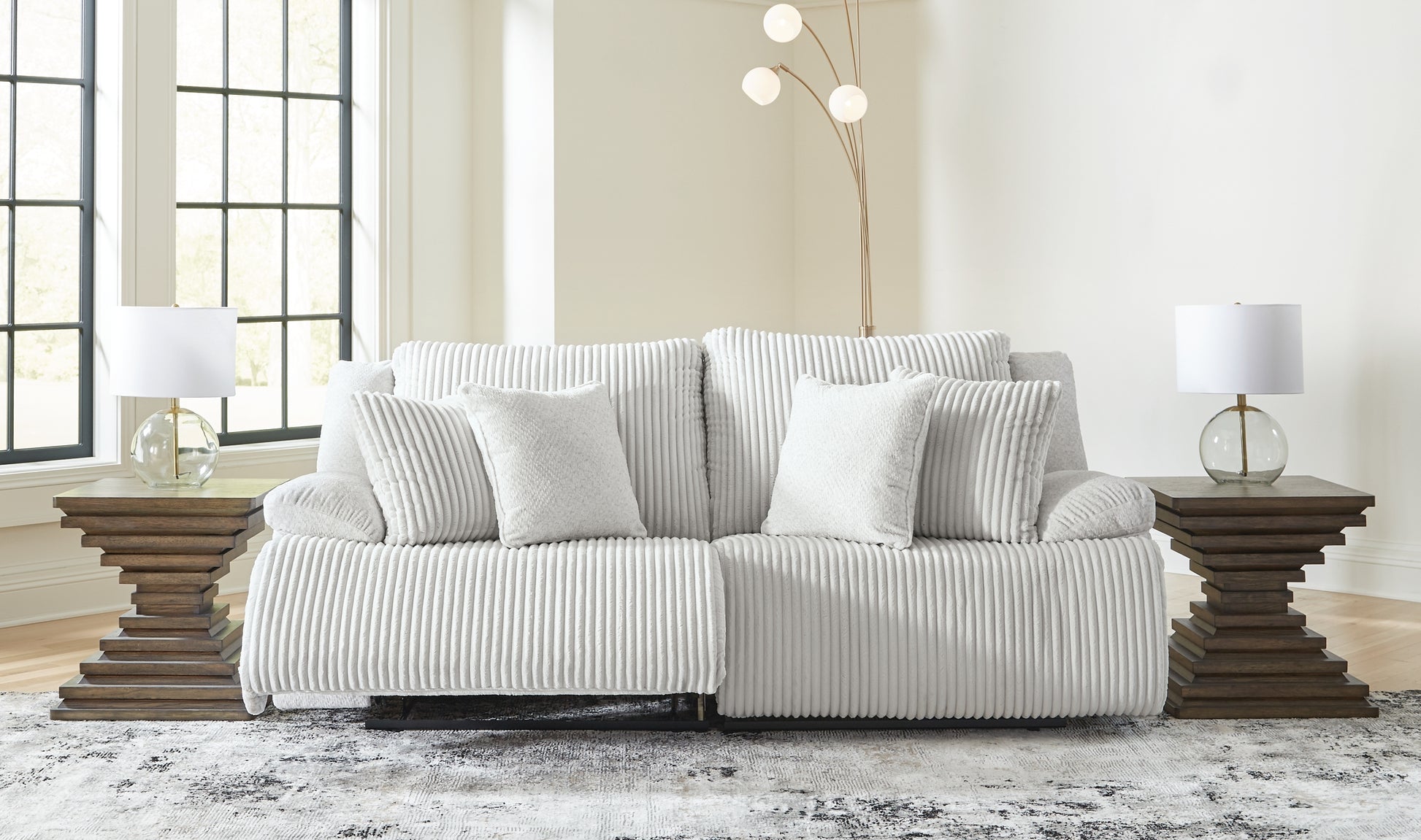 Experience unparalleled comfort with this reclining sectional loveseat. It’s a stylish and invitingly soft look—made all the more appealing by cozy corduroy cushions that feel great and add a touch of texture. The rich chocolate brown upholstery effortlessly blends into your decor, making it a gorgeous addition to your home. So sit back and unwind in this spacious set, perfect for gatherings with friends and family.