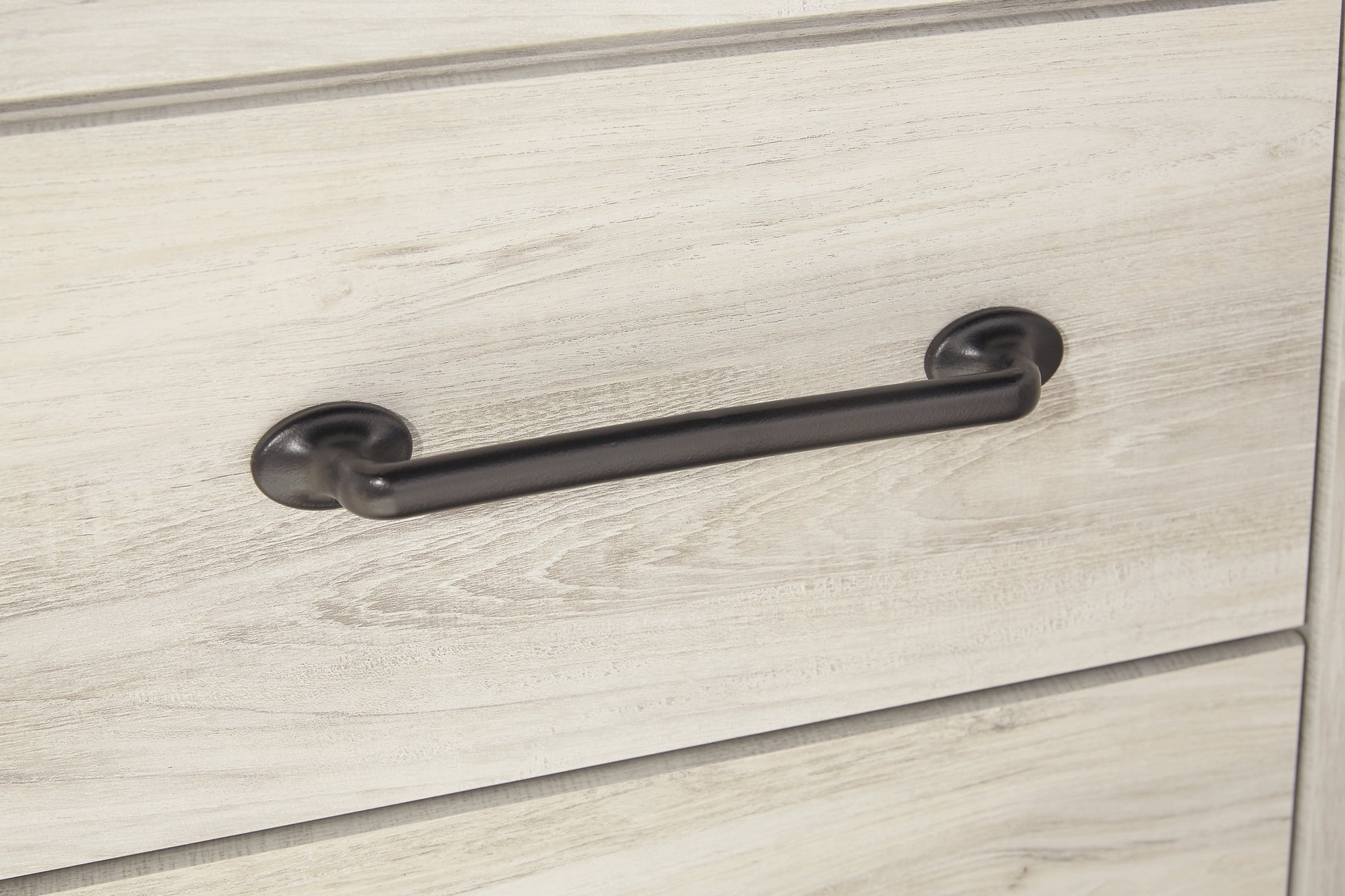 Details | B192-46: Made of engineered wood (MDF/particleboard) and decorative laminate, Wispy white finish over replicated oak grain with authentic touch, Large-scale hardware with dark finish, 5 smooth-gliding drawers, Drawer interiors are lined with a faux linen laminate for a clean, finished look, Safety is a top priority, clothing storage units are designed to meet the most current standard for stability, ASTM F 2057 (ASTM International), Drawers extend out to accommodate maximum access to drawer interior while maintaining safety, B192B1: Includes dresser with mirror, Made of engineered wood (MDF/particleboard) and decorative laminate, Wispy white finish over replicated oak grain with authentic touch, 6 smooth-gliding drawers, Drawer interiors are lined with a faux linen laminate for a clean, finished look, Large-scale hardware with dark finish, Mirror attaches to back of dresser, Assembly required, B192B2: Includes headboard, footboard and rails, Made of engineered wood (MDF/particleboard) and decorative laminate, Wispy white finish over replicated oak grain with authentic touch, Decorative sconce light, LED with 3 AA batteries, 2 slim-profile USB charging ports, Power cord included; UL-listed, Foundation/box spring required, sold separately, Mattress available, sold separately, Assembly required, Bed is compatible with an adjustable base, | |